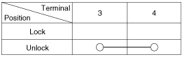 Check for continuity between the terminals in each switch position when inserting the key into the door according to the table.