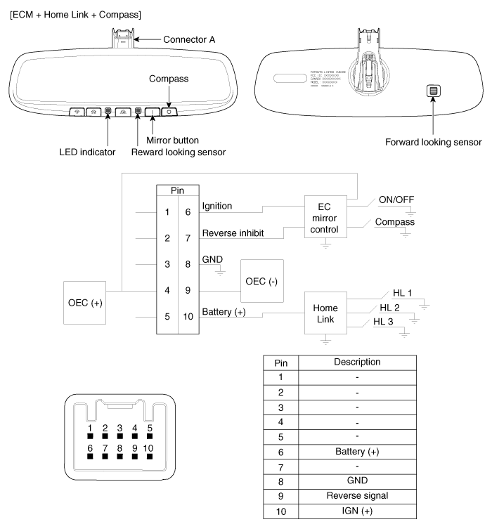TUCSON(LM) >2012 > G 2.4 DOHC > Body Electrical System > Electro chromic Inside Rear View Mirror>Components and Components Location