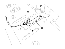After disconnecting the smart key unit connector (A), loosen the smart key unit mounting bolts, and remove the smart key unit (B).