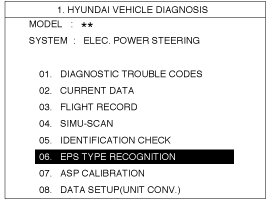 When the EPS type recognition is completed, the massage will be displayed on the screen as follows.