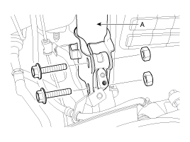 Disconnect the front strut assembly(A) with the knuckle by loosening the bolt & nut.