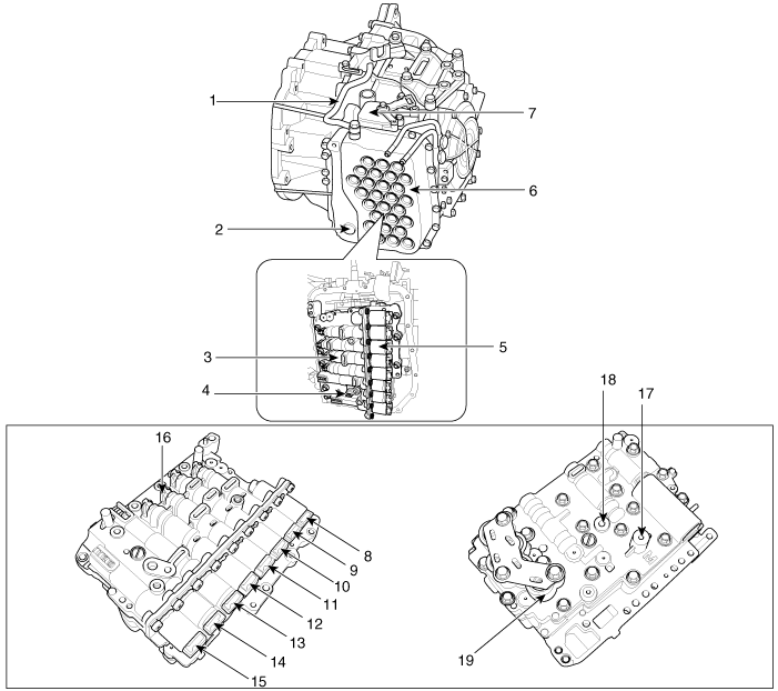 TUCSON(LM) >2013 > G 2.4 DOHC > Automatic Transaxle System > Valve Body System>Components and Components Location