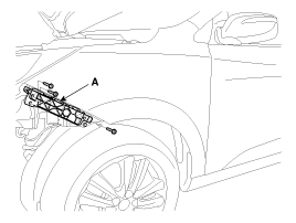 After loosening the mounting screws, then remove the front bumper side mounting bracket (A).