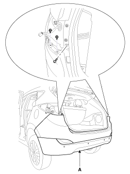 After loosening the mounting screws and clips, then remove the rear bumper (A).