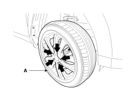 Be careful not to damage to the hub bolts when removing the front wheel and tire (A).