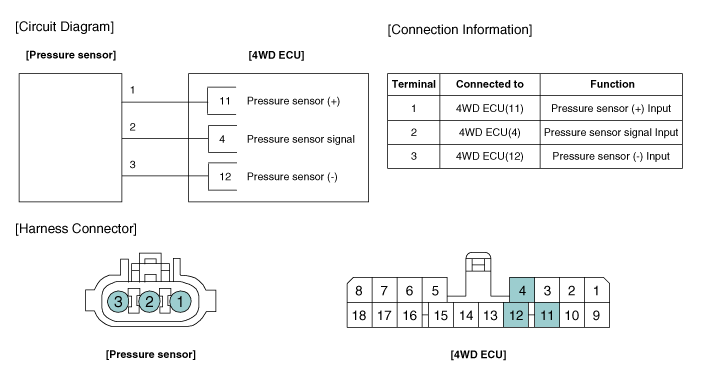 TUCSON(LM) >2013 > G 2.4 DOHC > 4 Wheel Drive (4WD) System > Coupling Assembly > Pressure Sensor>Schematic Diagrams
