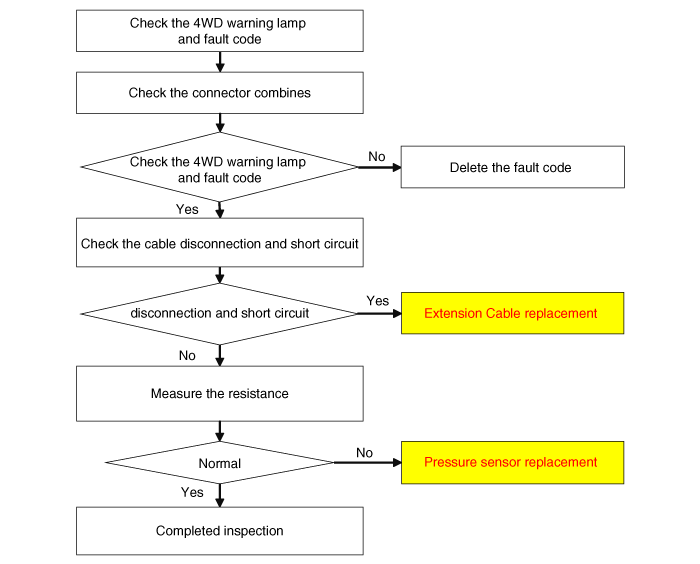 If you have trouble code related to the pressure sensor (P1825, P1826, P1827, P1828), check pressure sensor according to the inspection process.