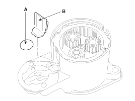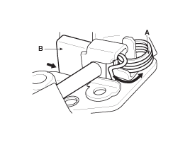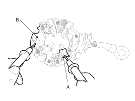 Check that there is no continuity between the (+) brush holder (A) and (-) plate (B). If there is continuity, replace the brush holder assembly.