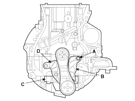 Remove the oil pump chain guide (D).
