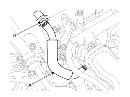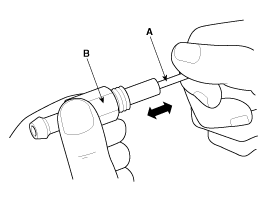 Insert a thin stick (A) into the PCV valve (B) from the threaded side to check that the plunger movement.