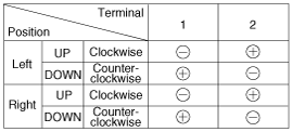 Connect the terminal No. 2 and No. 3 to battery voltage (12V) and check that the motor operates smoothly when connecting the terminals below.
