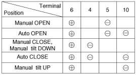 Ground the terminals as below table, and check that the panoramaroof unit operates as below table.