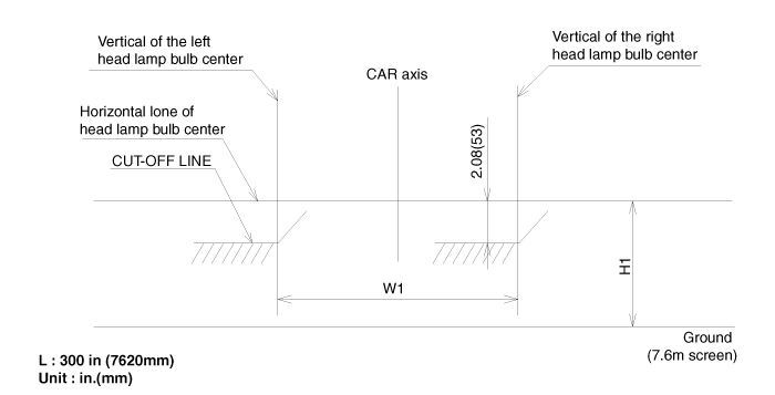 With the head lamp and battery in normal condition, aim the head lamps so the brightest portion falls on the vertical lines.