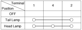 With the multi function switch in each position, make sure that continuity exists between the terminals below.