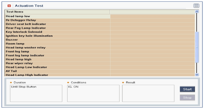 To perform test on "Multifunction switch" outputs, select "Actuation test".