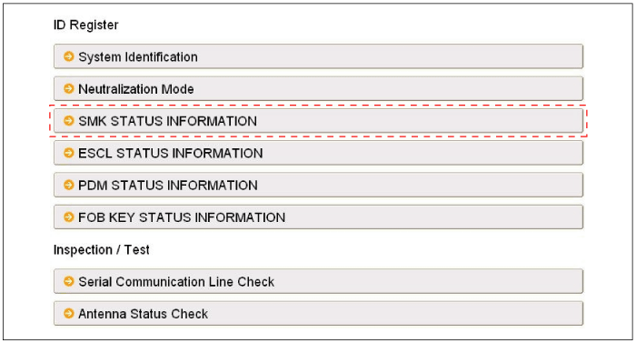 Smart key system defects can be quickly diagnosed with the GDS. GDS operates actuator quickly to monitor, input/output value and self diagnosis.