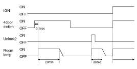 Perform outputting LOCK up to 3 times (cycle for 1s) if either of DOORS is UNLOCKED after outputting LOCK in (2). But, ignore the DOOR that has changed to LOCK condition from UNLOCK during the output 3 times.