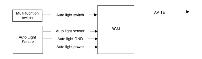 AV Tail Output Control is started In ACC, IGN, START regardless of MFSW Auto Light switch.